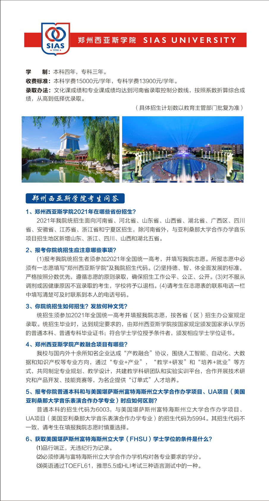 郑州西亚斯学院4+0本科留学项目招生简章